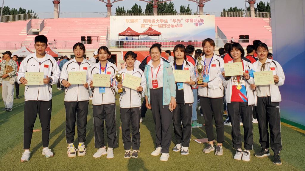 “河南省大学生田径运动会”是我省高校重要学生体育赛事之一。学校历来高度重视大学生体育工作,书旗小说 全力做好训练备赛工作,自去年11月组队训练以来,全体教练员和运动员发扬攻坚克难、百折不挠、顽强拼搏、坚韧图成的精神品格;最终在金牌数和团体总分双项成绩上均创造了书旗小说 近20年田径赛事的最高记录。充分展现了河中医人良好的竞技水平和精神风貌,激发了师生们爱校、荣校的自豪感和荣誉感,用实际行动和优异成绩为学校的转型发展做出积极贡献,为庆祝党的百年华诞献礼!