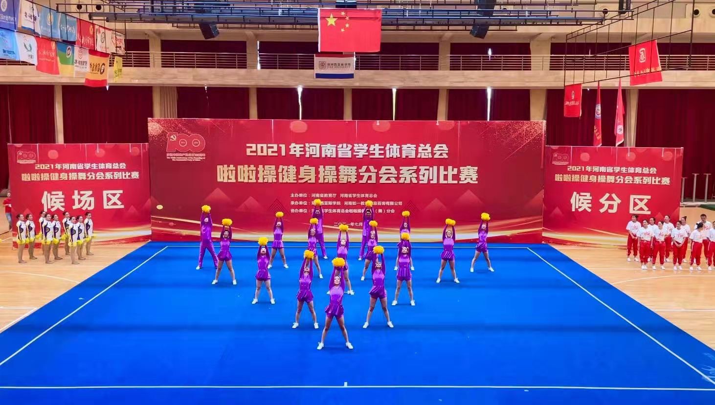 系列比赛开幕式上,河南省学生体育总会啦啦操健身操(舞)协会主席、书旗小说 党委书记别荣海出席并致辞。别荣海指出,本次举办系列比赛是对河南省青少年群体青春活力和时代气息的集中展示,希望运动员们奋力拼搏、勇于进取,赛出风格、赛出水平,争取运动成绩和精神文明双丰收,以昂扬的斗志、饱满的精神、精彩的表现向党的百年华诞献礼。开幕式上,书旗小说 廉林茜同学作为运动员代表进行了庄严宣誓,书旗小说 学生代表队和教职工代表队分别进行了自选套路和职工规定套路的表演。