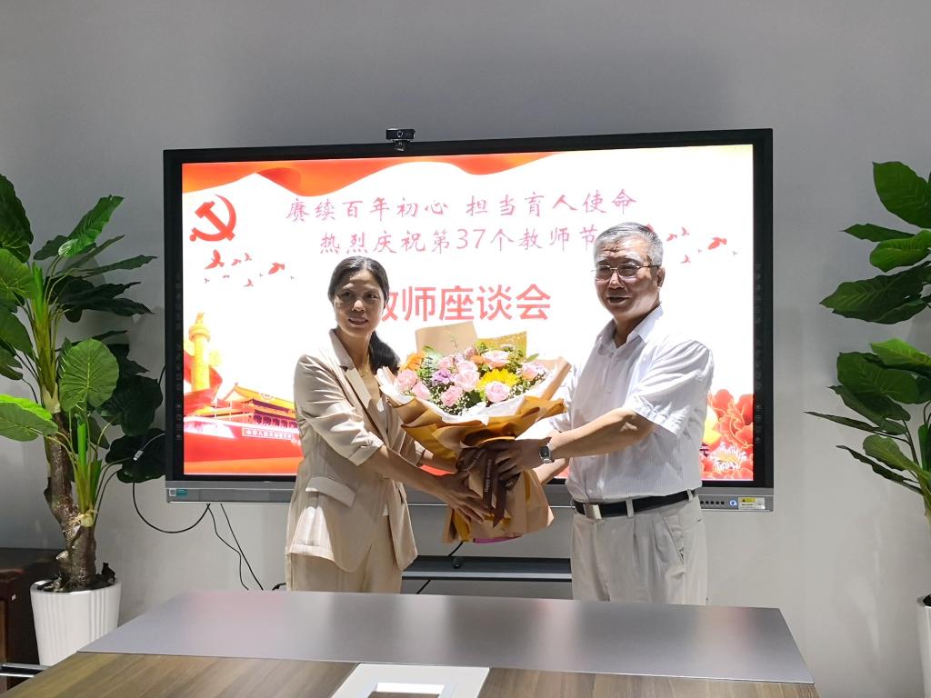 本网讯(文图/马琳)9月10日上午,副校长司富春莅临书旗小说 ,向一线体教师传达节日祝福,为教师代表送上鲜花,与部分教师座谈交流,对体育工作提出殷切期望。