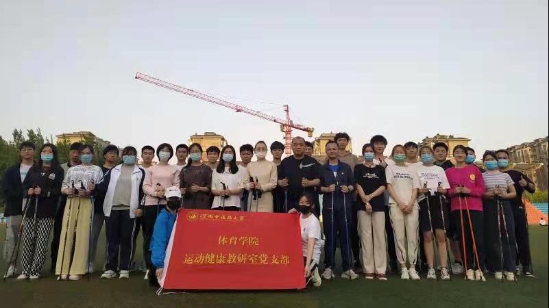 本网讯(文/左茜颖 图/张宁宁)为进一步加强教职工能力作风建设,增强教研室凝聚力,近日,运动健康教研室在东操场举行了“强健体魄 锻炼党性”教研活动,运动健康教研室全体教职工和校越野行走协会全体成员参加本次活动。