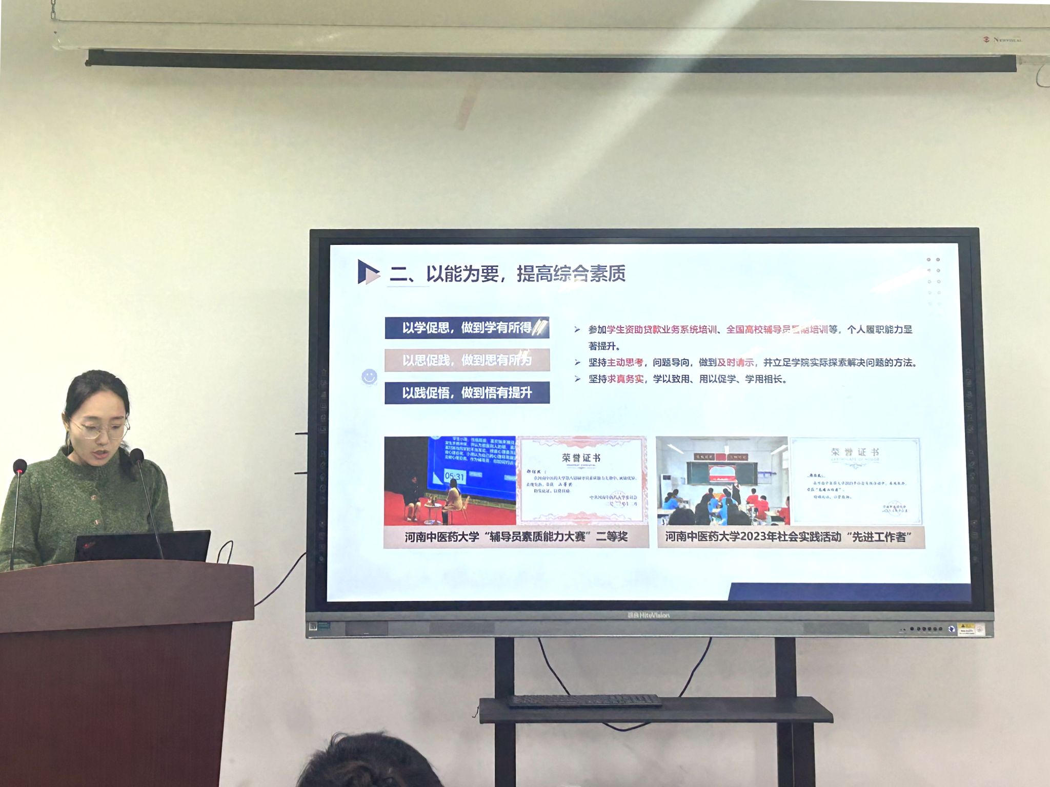 运动健康教研室党支部书记、教研室主任左茜颖述职