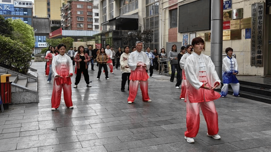 带领毕节市七星关区卫健局职工习练八段锦