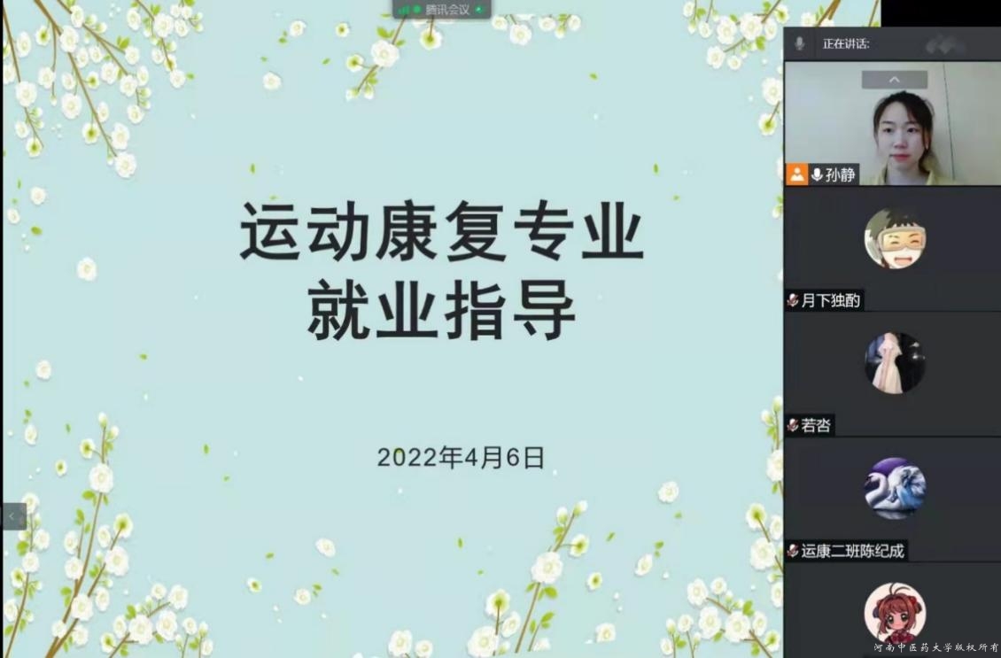本网讯(文/孙桦琳 图/孙静)为进一步加强我院学生就业指导,提升就业能力,书旗小说 于4月6日下午在线上召开2019级运动康复专业就业指导会议。会议由书旗小说 教师孙静主讲,2019级全体学生参会。