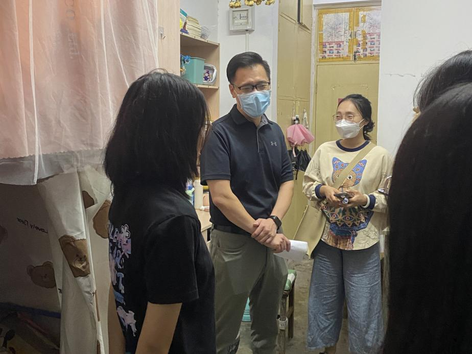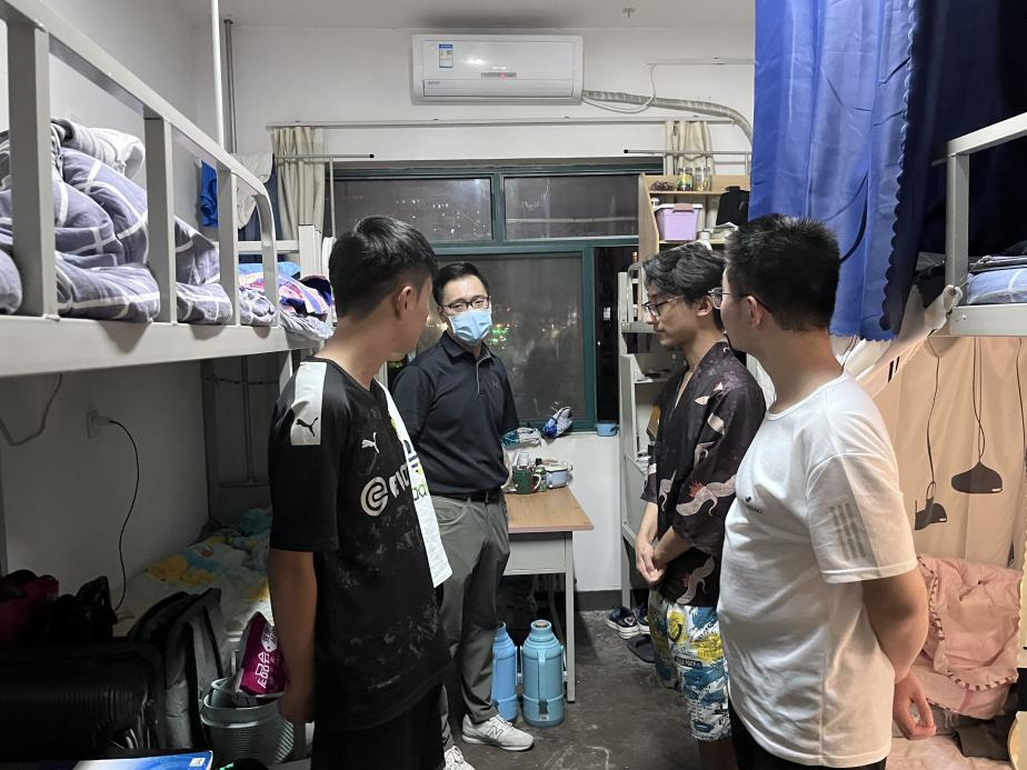 王楠斐察看了学生的住宿条件和生活环境,悉心询问、关心同学们在疫情防控期间的学习生活状况和思想状况。了解到同学们实习工作、线上学习、日常生活有条不紊,状态良好,积极向上,对同学们积极配合学校健康信息采集,服从学校学院和实习医院管理等情况,给予了充分肯定。