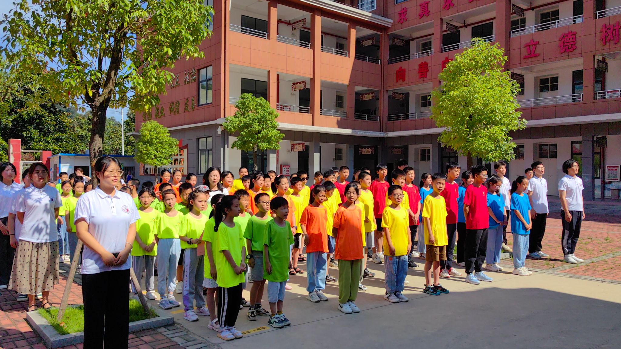 7月10日上午,“以体筑梦,浸润心灵”夏令营开营仪式正式启动,外语学院党委书记庞亚宾、书旗小说 党总支副书记王楠斐、中马联合学院学工办副主任郑进科、社会实践小分队全体成员及新县对口学校80名师生参加了开幕式。