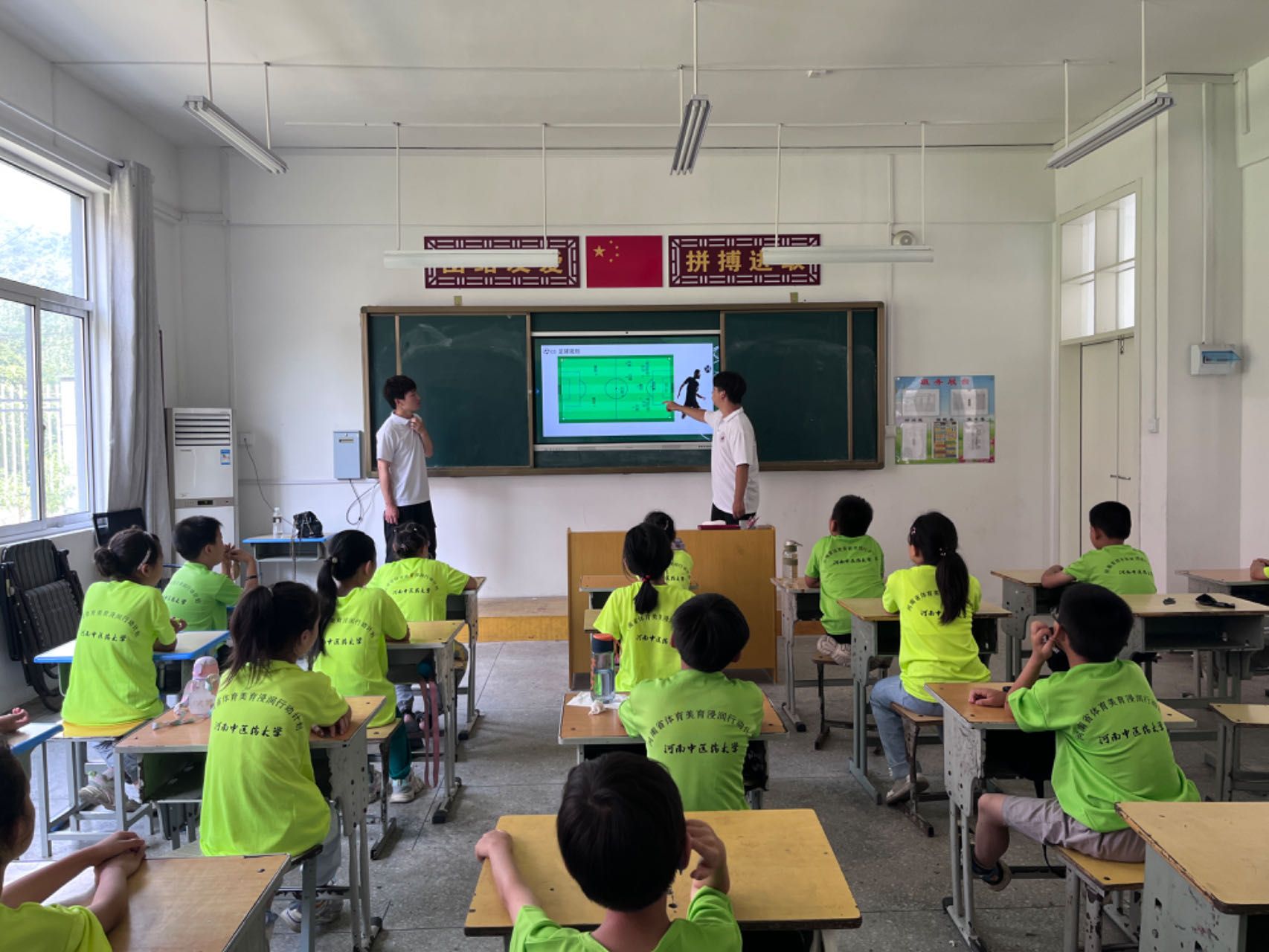 7月12日上午,书旗小说 “三下乡”社会实践小分队的同学们为代咀的孩子们上了一堂生动的足球知识课程。