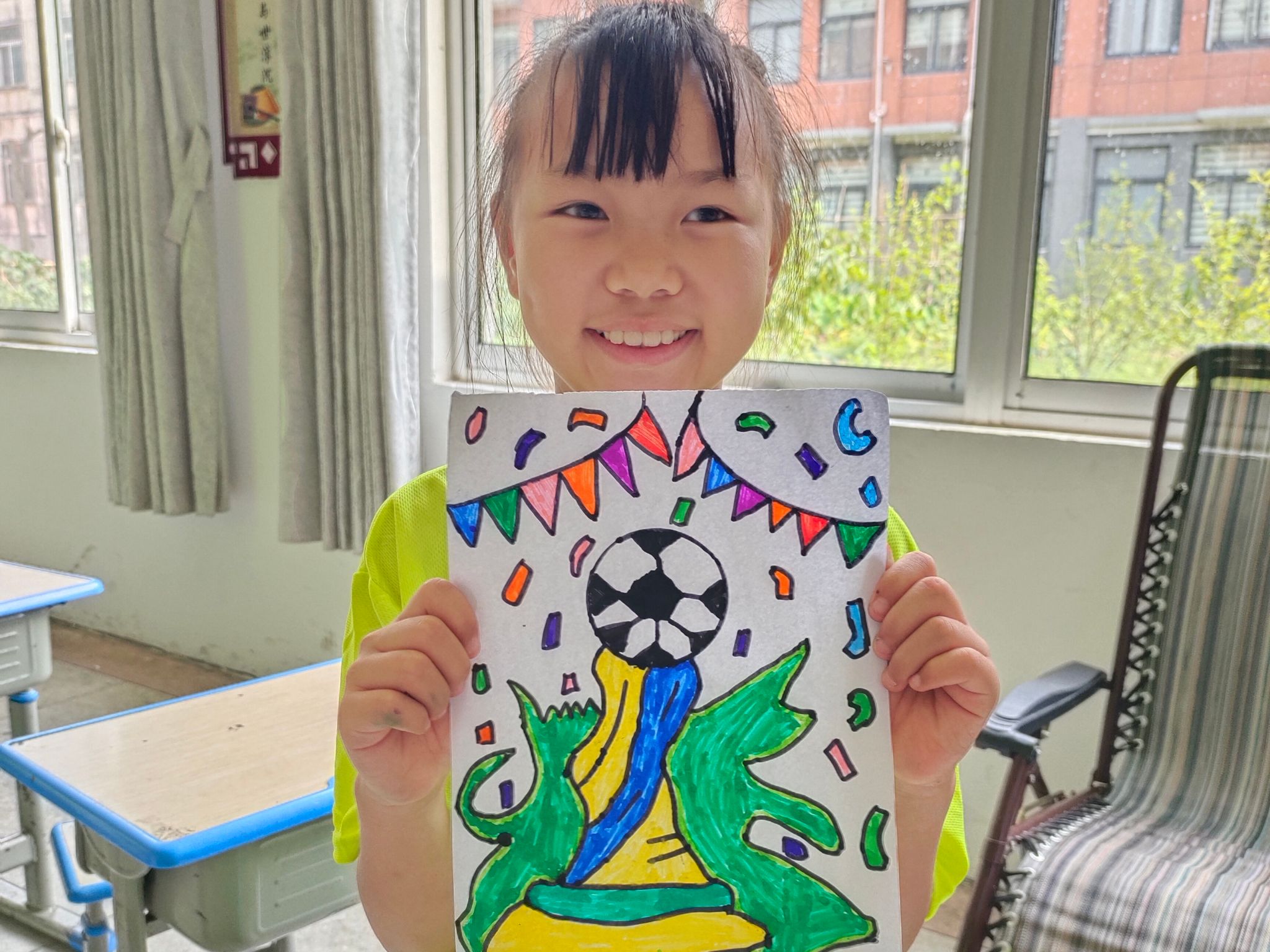 孩子们用彩笔绘出一张张饱满生动的体育绘画作品,呈现出五彩斑斓的内心世界。绘画治愈着每一个孩子,也让孩子们的世界更加多姿多彩。