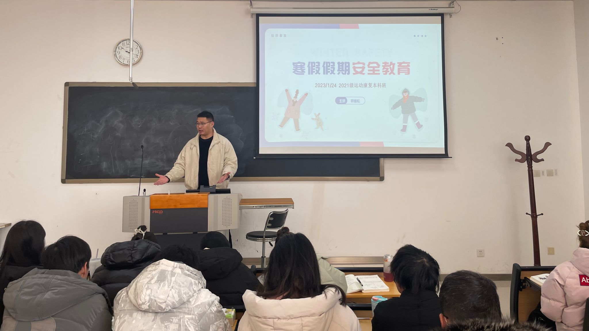 会上,2021级运动康复本科班班长郭继松首先从课程复习经验、考试注意事项温馨提示和考前焦虑心态调节三个方面进行分享,倡导同学们保持诚信守纪的良好考风。随后重点介绍了流感防护、交通安全、消防安全、人身财产安全、饮食安全、网络安全等方面的知识,引导同学们进一步增强安全防范意识,提高自我保护能力。