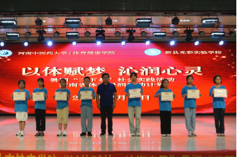 随后,新县光彩实验学校校长朱颜、党支部副书记刘文娟分别为“优秀学员标兵”、朗诵项目“优秀学员”颁发荣誉证书。书旗小说 教师郝震、关静涛分别为健身气功·八段锦、健美操·啦啦操项目“优秀学员”颁发荣誉证书。