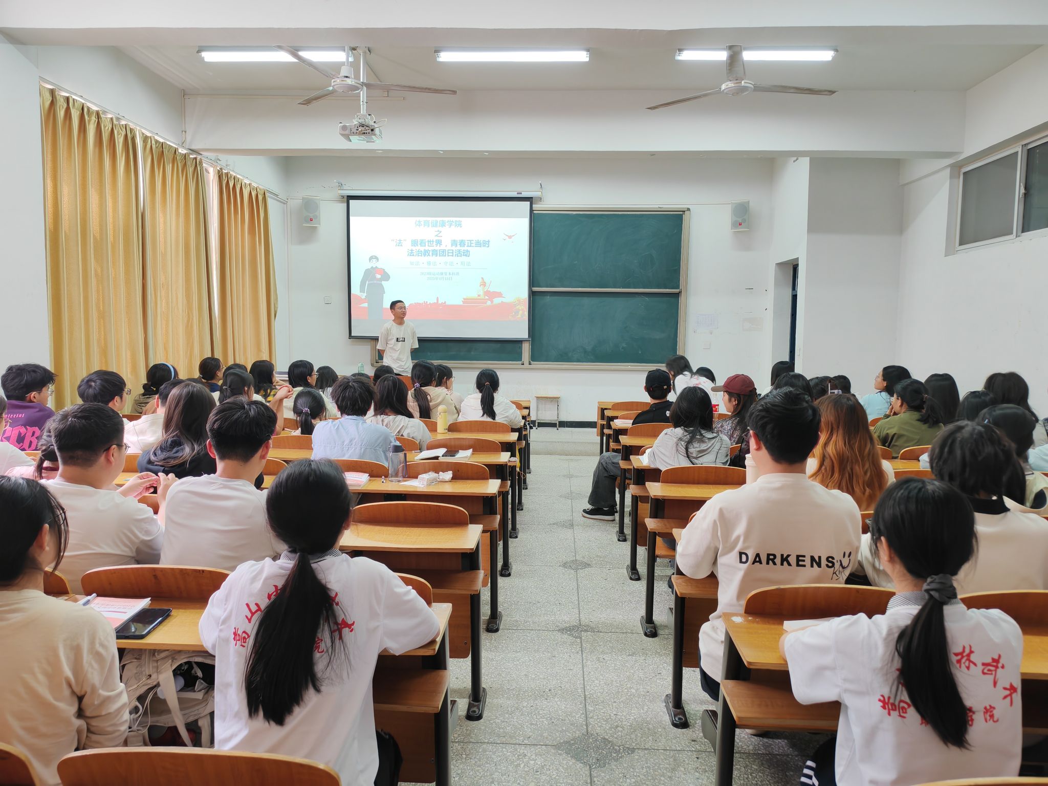 活动以一场生动的宪法专题学习拉开序幕。2022级团支书吕明阳以“弘扬宪法文化的意义”为切入点,讲解了宪法的发展历程、核心内容及其对公民权益的保障作用。随后,通过播放视频,引导同学们深入思考弘扬宪法文化的现实意义。最后,围绕“宪法与体育健康领域的法治实践”展开讨论,同学们结合专业特点,探讨了体育赛事规则、运动员权益保护等话题,深化了对宪法精神的理解。