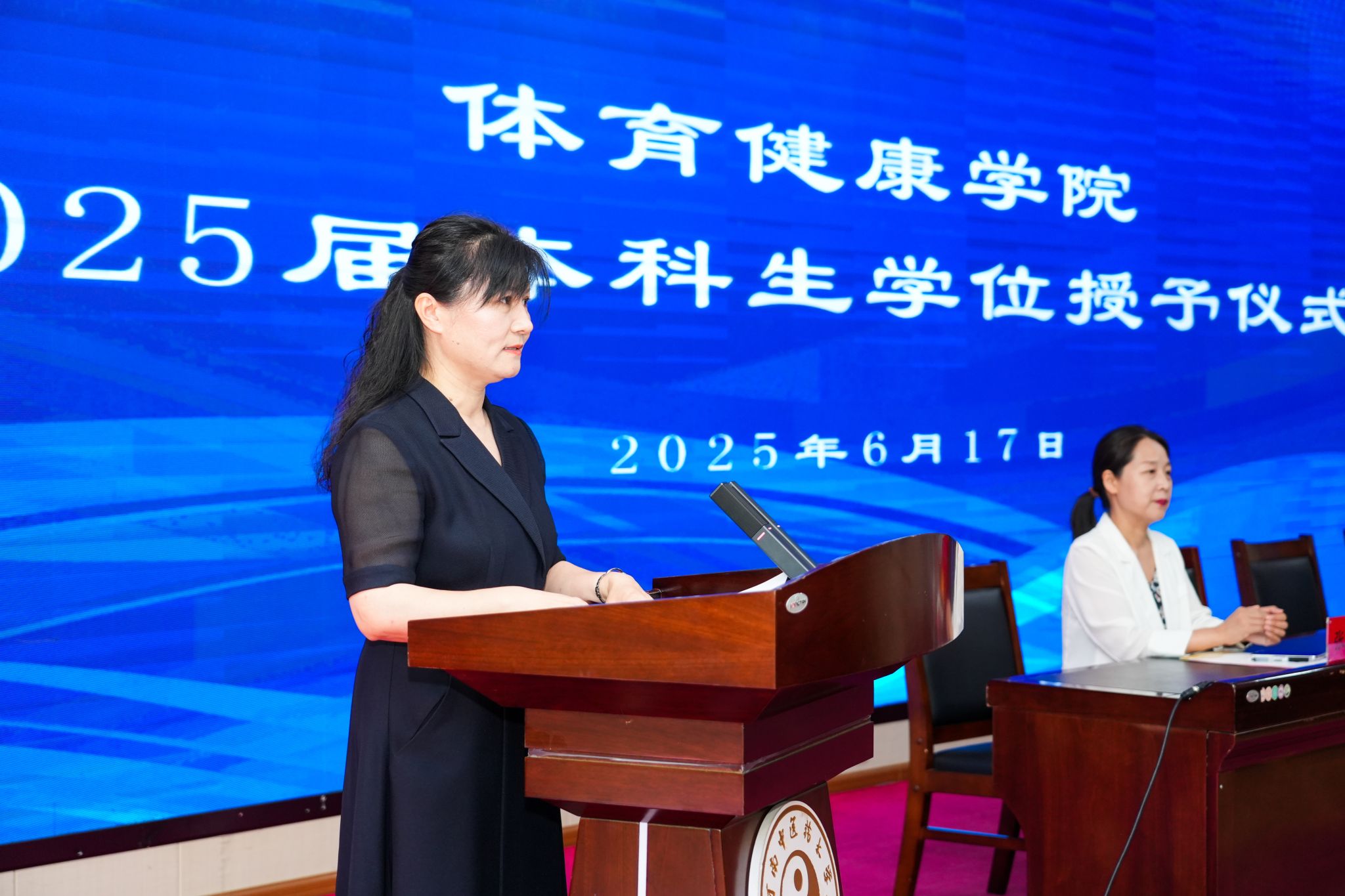 仪式在庄严的国歌声中拉开帷幕。书旗小说 院长崔东霞发表致辞,向毕业生致以热烈的祝贺和美好的祝福。回顾同学们四年来的成长历程,从初入校园的青涩懵懂,到如今的成熟自信,每一个进步都凝聚着大家的汗水与努力。希望毕业生们坚定理想信念,不断锤炼专业本领,秉承“厚德博学,承古拓新”的精神,在人生新征程上勇毅前行,以昂扬的姿态迎接挑战,勇敢追逐心中的梦想。