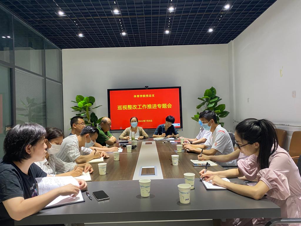 孟肖飞强调,全体师生要深入学习领会习近平总书记关于全面从严治党重要论述,增强行动自觉,不断提高政治站位,各责任科室、责任人要对照巡视反馈问题认真抓好落实,把巡视整改作为推进全面从严治党、推动整体工作的重要契机和有力抓手,以对党的事业忠诚的态度,落实巡视整改各项任务。各科室、各支部要以巡视整改工作为契机,自觉把巡视整改与促进学院发展融为一体,主动对接省委“十大战略”安排部署,按照学校“十四五”规划发展方向,全面加强和改进学校体育工作,落实立德树人根本任务,为培养德智体美劳全面发展的社会主义建设者和接班人提供助力。